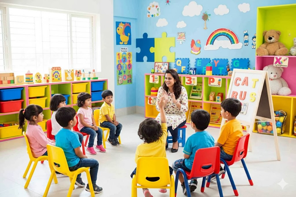 Our play school and daycare focus on early childhood development, creativity, and confidence-building through fun-based learning.
